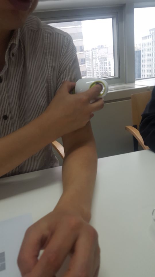이번 전략회의에서는 혈당계 mockup시제품 사용을 시연하였습니다.